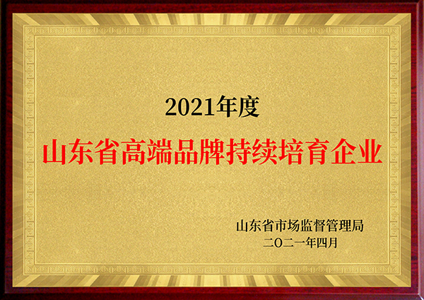 2021年度山东省高端品牌持续培育企业