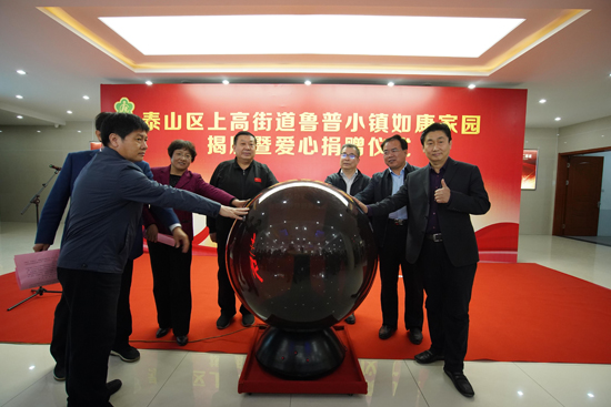 4月21日,泰安市泰山区上高街道鲁普小镇如康家园揭牌暨爱心捐赠仪式在鲁普耐特集团顺利举行